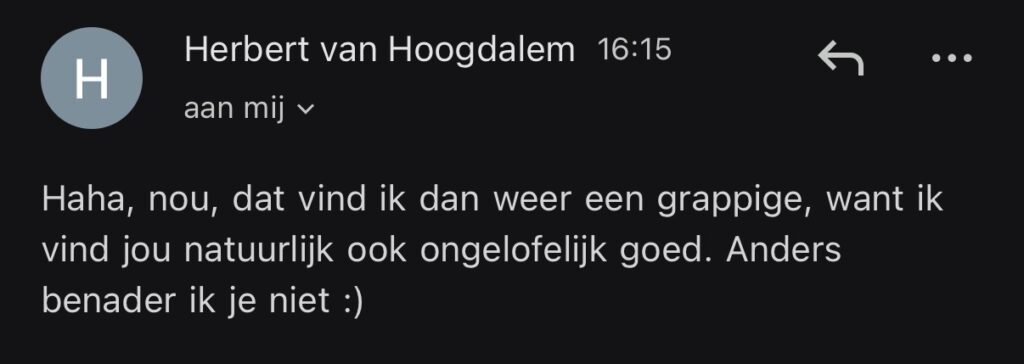Niemand minder dan Herbert van Hoogdalem – de Nederlandse Don Draper – vindt iets van me:
