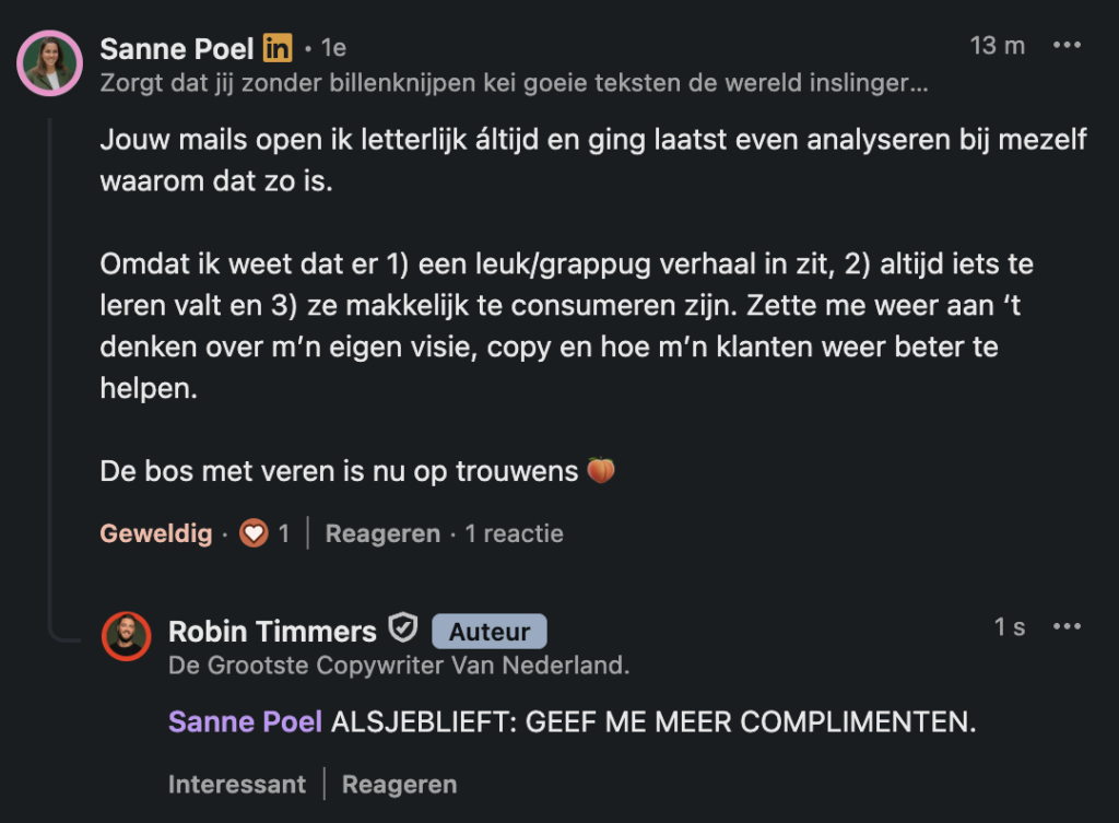 't Komt waarschijnlijk omdat die mails "geniaal" zijn, zoals Koen hier zegt: